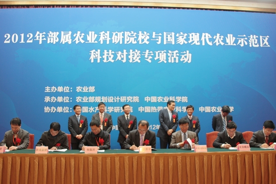 On November 6th, 2012, CAAS signed 41 S&T cooperative agreements with 38 China’s National Modern Agricultural Demonstration Zones on an agricultural S&T achievements promotion sponsored by the MOA. And CAAS is one of the two organizers.