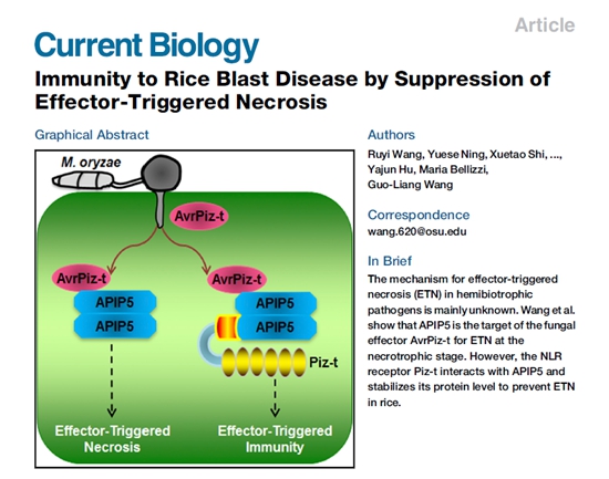 Hemibiotrophic pathogens are some of the most destructive plant pathogens, causing huge economic losses and threatening global food security. However, how hemibiotrophic pathogens trigger host necrosis and how plants inhibit the transition from the biotrophic stage to the necrotrophic stage in disease symptom expression are mainly unknown. Recently, researchers at State Key Laboratory for Biology of Plant Diseases and Insect Pests, Institute of Plant Protection (IPP), Chinese Academy of Agricultural Sciences (CAAS) have published a research paper about mechanism for effector-triggered necrosis (ETN) in hemibiotrophic pathogens by characterizing the target of Magnaporthe oryzae effector.