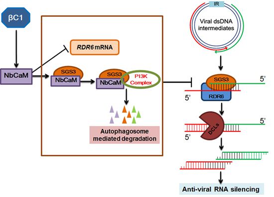 Post-transcriptional gene silencing (PTGS) is an elaborately regulated process for defense against virus infection in plants. To achieve effective infection, a betasatellite molecule associated with geminivirus induced high levels of an endogenous RNA silencing suppressor, calmodulin-like protein (CaM), to counter host defenses. However, the mechanism underlying CaM-mediated PTGS suppression is poorly understood. Recently, researchers at the State Key Laboratory for Biology of Plant Diseases and Insect Pests, Institute of Plant Protection of CAAS have published a research paper about autophagy pathway-mediated degradation of SGS3 by CaM in Nicotiana benthamiana.