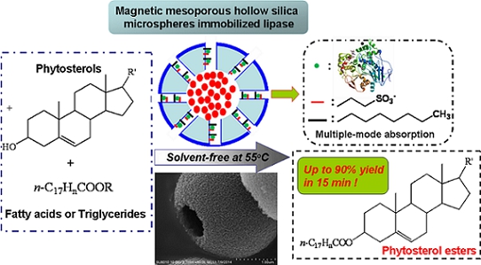 This achievement has been successfully applied in the targeting preparation of functional lipids such as phytosterol ester, breast lipid substitutes and flavonoid unsaturated fatty acid esters and the like. Phytosterol ester product meets the quality requirements of the US Food Chemicals Codex and Chinese Ministry of Health Announcement (2010 No. 3). Compared with the domestic and foreign technologies, this technology has the advantages of outstanding targeting effect, high conversion efficiency, fast reaction speed, wide adaptability of raw materials and product diversification, etc., which is significant for the expansion of the lipid resources applications, the increase of the added value and comprehensive benefits of oil processing, and the promotion of residents nutrition and health levels.