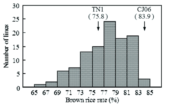 Rice grain consists of an inner brown rice (edible part) and a hull (inedible part) reciprocally interlocked by the lemma and palea. Converting photosynthetic products to people edible part or brown rice as far as possible was one of the effective methods to increase the "output" of rice. Brown rice rate (BRR) is a key factor ensuring grain yield and quality in rice. Therefore, increasing the grain BRR or decreasing the hull percentage played an important role in improvement of the actual grain yield.