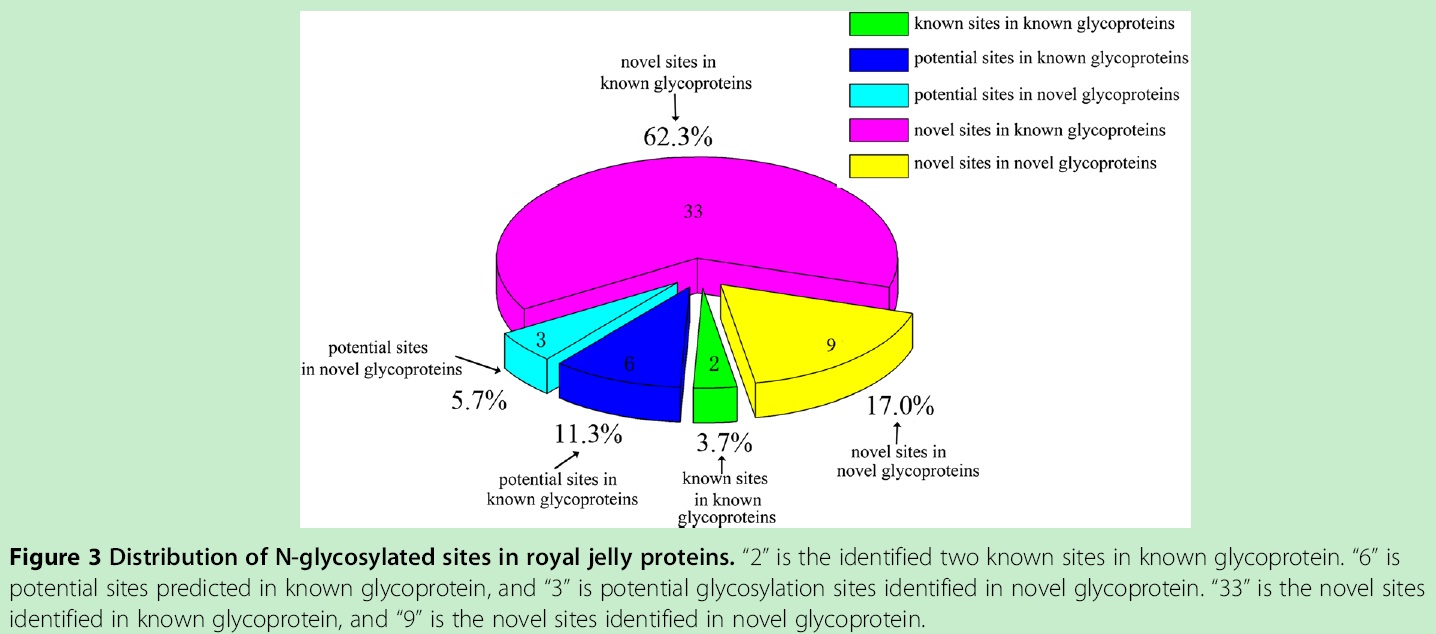 Recently, the research team led by Professor Li Jianke, Institute of Apicultural Research (IAR) of Chinese Academy of Agricultural Sciences (CAAS) identified 13 novel proteins and 25 glycoproteins in royal jelly. In 2011, the same team has already discovered 19 proteins in royal jelly proteomic research. The newly identified proteins and N-glycosylated proteins are closely linked to the health promoting function for human. The paper has been published in BMC Genomics on February 16th, 2014.