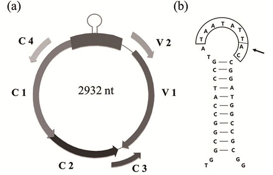 Figure 1 (a) Schematic representation of the circular DNA genome of AGV;