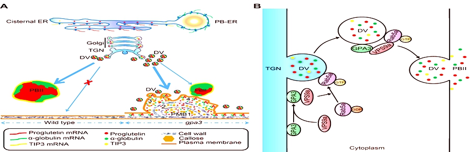 GPA3 plays an essential role in post-golgi trafficking of storage protins in rice