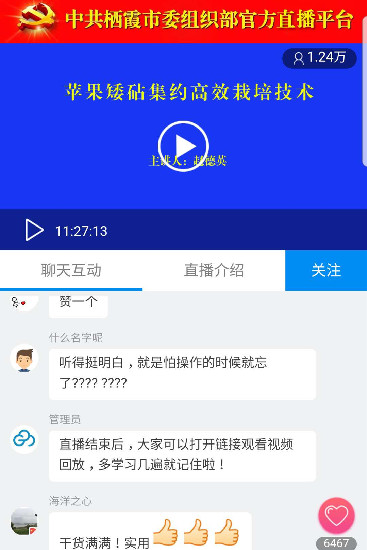 据不完全统计,栖霞市收看培训的基点约1.63万个、近7万果农,近2万果农发表了评论并点赞。果农们表示,通过专家的讲解长了见识,开阔了思路,干货满满,非常实用。希望这样的培训能够持续进行下去。