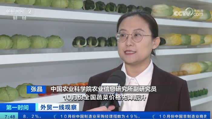 [CCTV-2]《第一时间》外贸一线观察 农业农村部:10月份全国蔬菜价格环比上涨0.6%