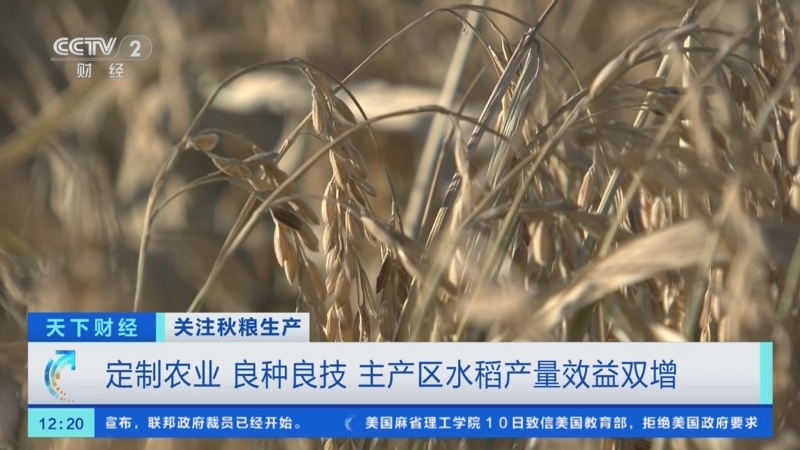 [CCTV-2]《天下财经》关注秋粮生产 定制农业 良种良技 主产区水稻产量效益双增