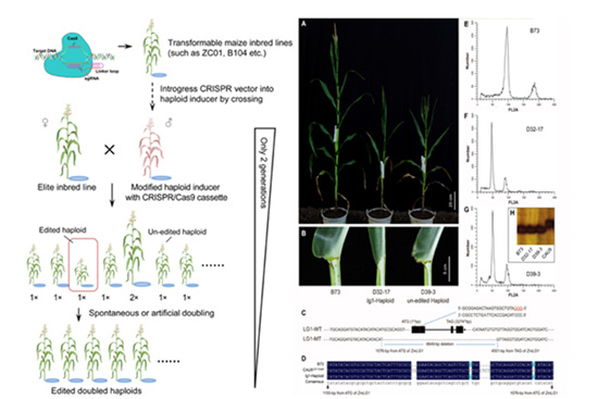 众所周知,高产优质新品种是农业的基石,而传统的作物育种方法周期长、效率低。近年来,新的作物育种技术不断涌现,如单倍体技术、基因编辑技术等都可以在一定程度上加快作物育种进程,提高育种效率,但在应用中均存在不足。单倍体技术可实现作物基因型的短时间固定,但性状选择的方向难控制,盲目性较大。而以CRISPR/Cas9为代表的基因组编辑技术可以高效精准编辑DNA序列,实现优良性状的精准改良,但是受到育种材料遗传转化能力的限制,其应用需经过漫长的回交转育和大量的群体选择,费时费力,并且去除载体的过程还增加了育种的复杂性,限制了该技术在商业化育种中的应用效率。