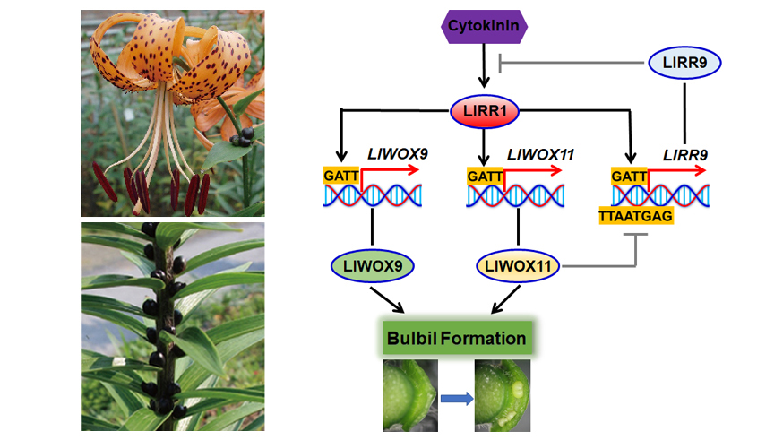 近日,中国农业科学院蔬菜花卉研究所花卉种质资源与遗传育种创新团队克隆了两个百合珠芽新基因LlWOX9和LlWOX11,并对其调控百合珠芽形成的分子机制进行了深入解析,揭示了二者与细胞分裂素通路之间的正反馈调节环进而促进百合珠芽形成的新通路,对提高百合繁殖效率具有重要意义。相关研究成果发表在《植物生理学(Plant Physiology)》上。