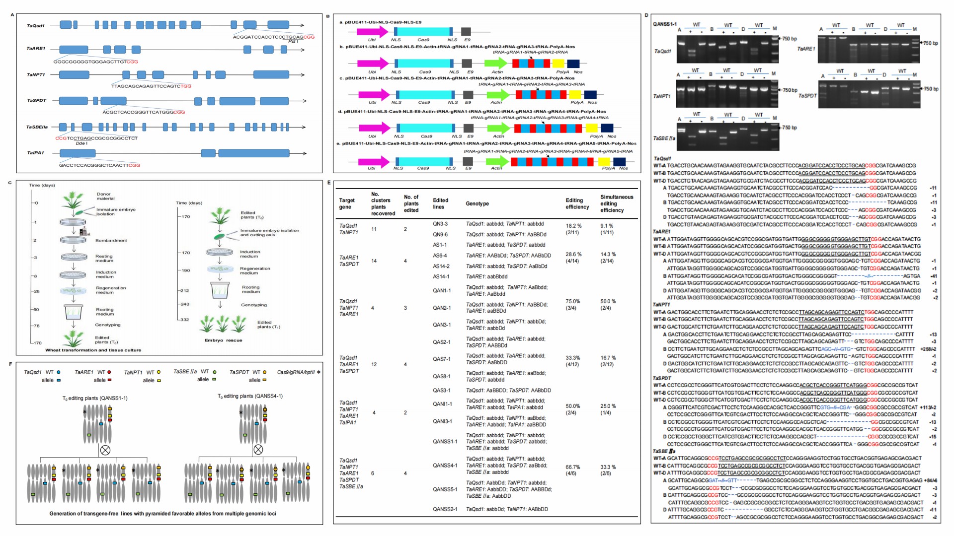 图:CRISPR/Cas9系统介导的小麦多基因编辑,获得聚合多个优良等位基因的小麦新种质